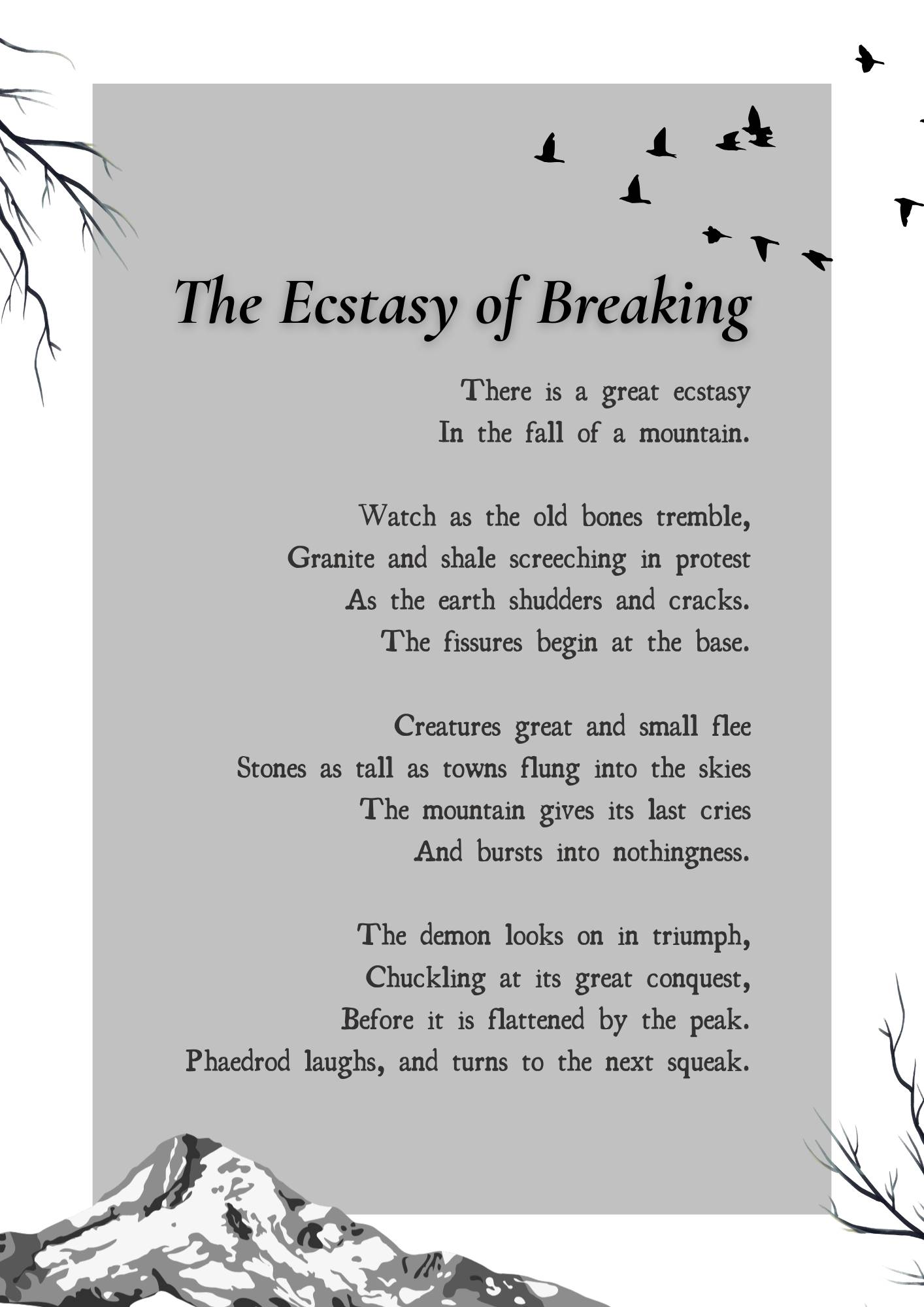 Poems from this week!As part of our project 369, we'll be bringing our poems to you! Every newsletter will bring selections from our favorites this week. If you want to read more of our poetry, see behind-the-scenes work, or support everything that Arcane Inkdustries is doing, click the link and sign up to be a Patreon supporter now.
